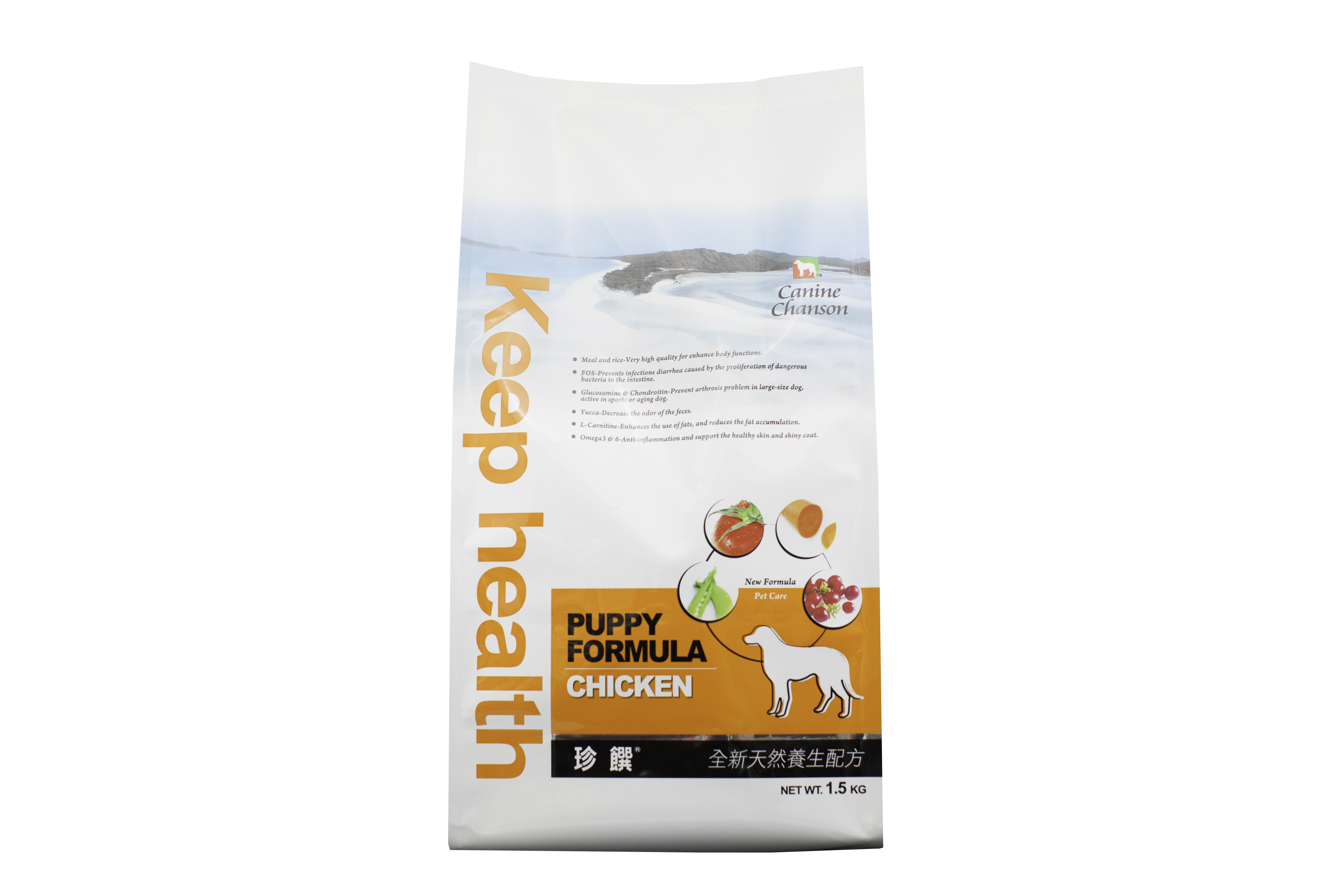 Please mix a small amount of Canine Chanson Puppy Formula into the current food gradually when change your dog’s feed., and give your dog at least one to two weeks to switch to the Canine Chanson Formula gradually.